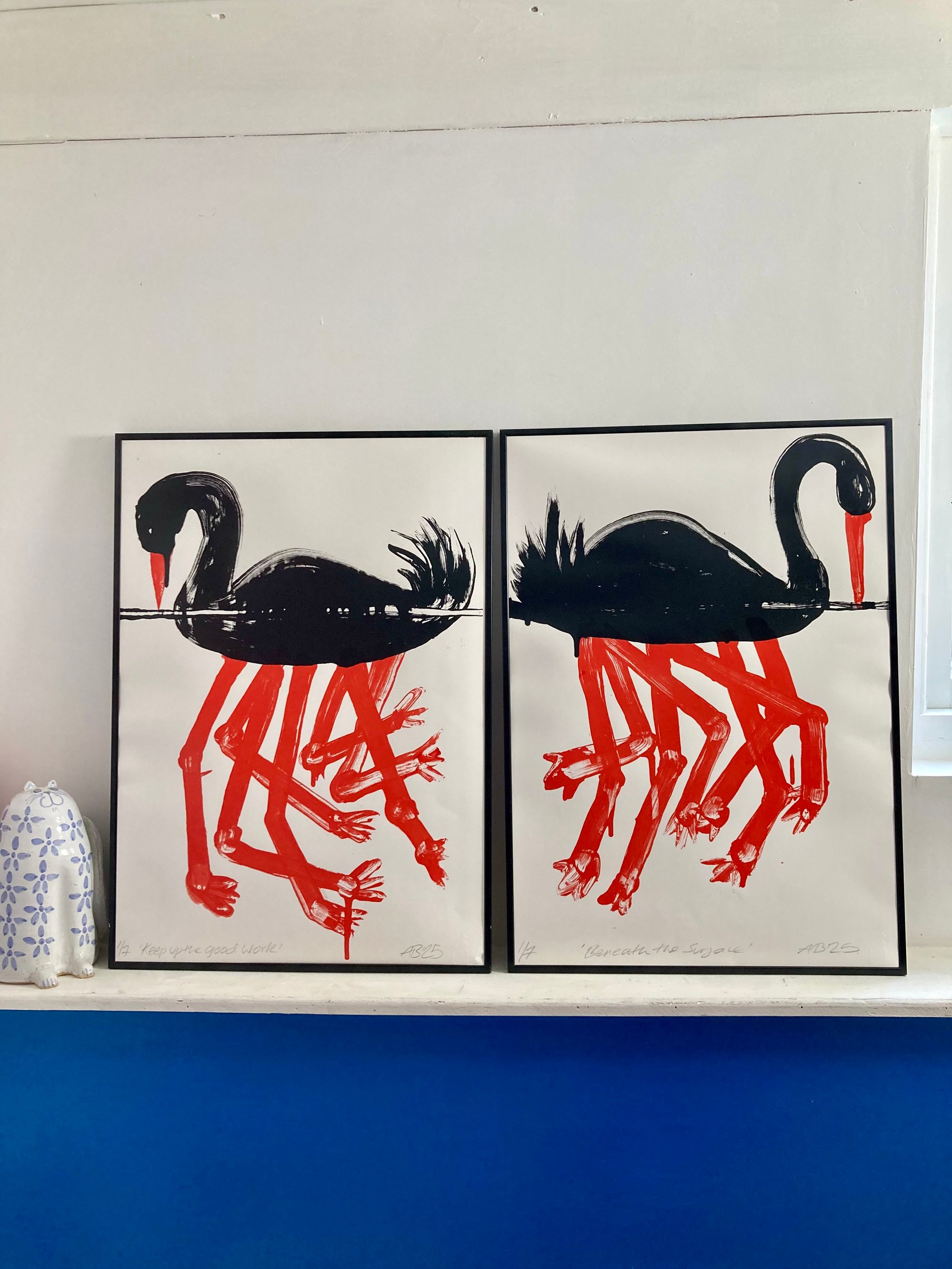 This artwork is something I made last year during a difficult time while juggling parenting, work, moving across the country. We all know the feeling of trying to maintain composure while frantically paddling to stay afloat.